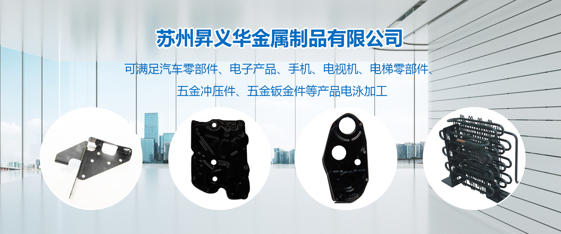 蘇州昇義華金屬制品有限公司是一家進行各類金屬表面處理專業公司。主營自動流水線電泳加工,可滿足汽車零部件、電子產品、手機、電視機、電梯零部件、五金沖壓件、五金鈑金件等產品電泳加工。